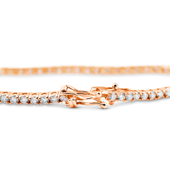 Made in solid 14k rose gold with round brilliant cut natural diamonds totaling 4ct. Bracelet length: 7' with double locking clasp.