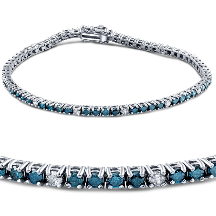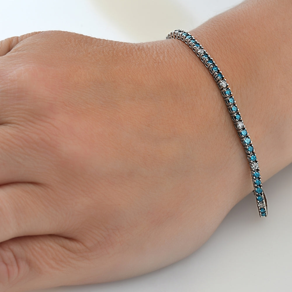 2 CT Treated Blue & White Diamond Tennis Bracelet 14K White Gold