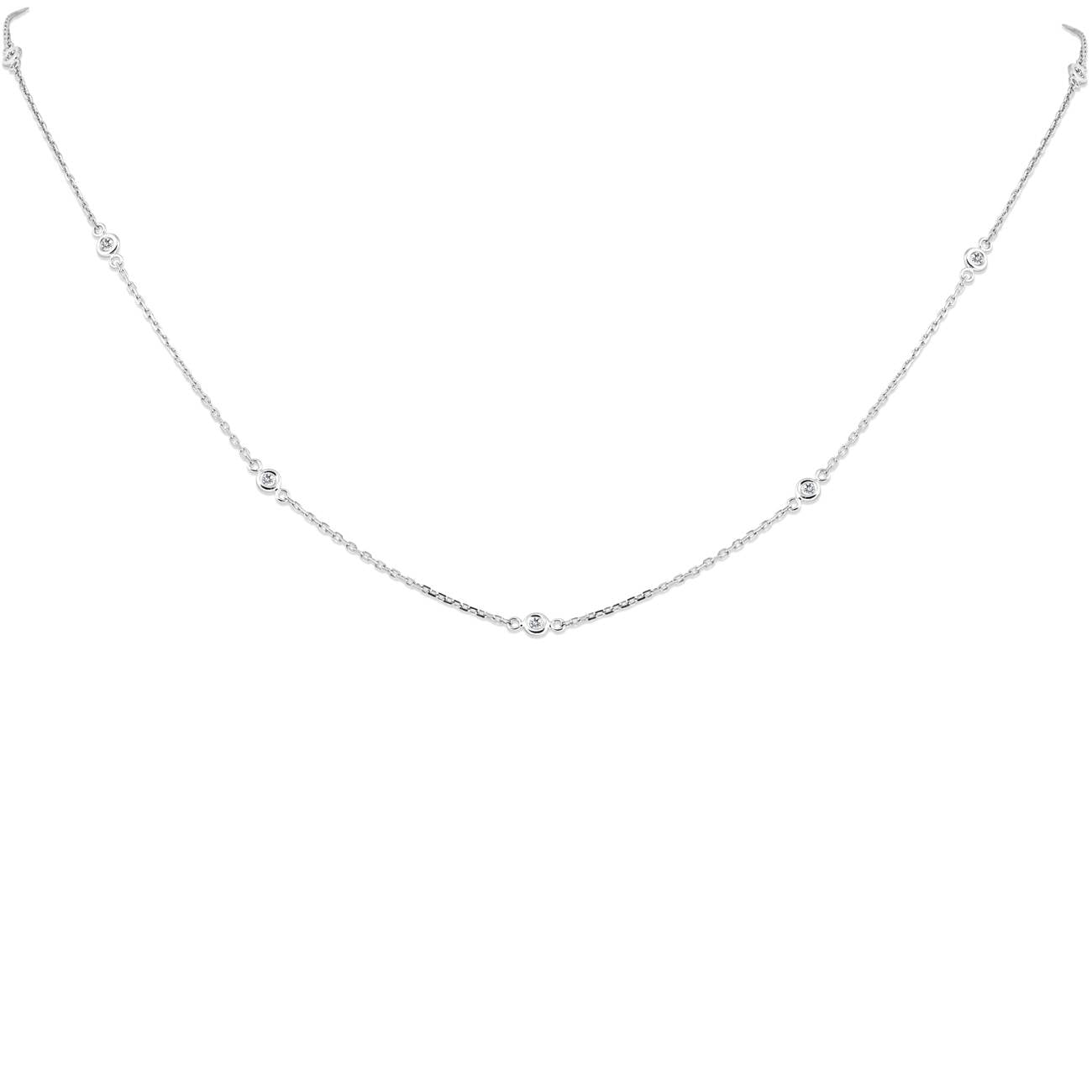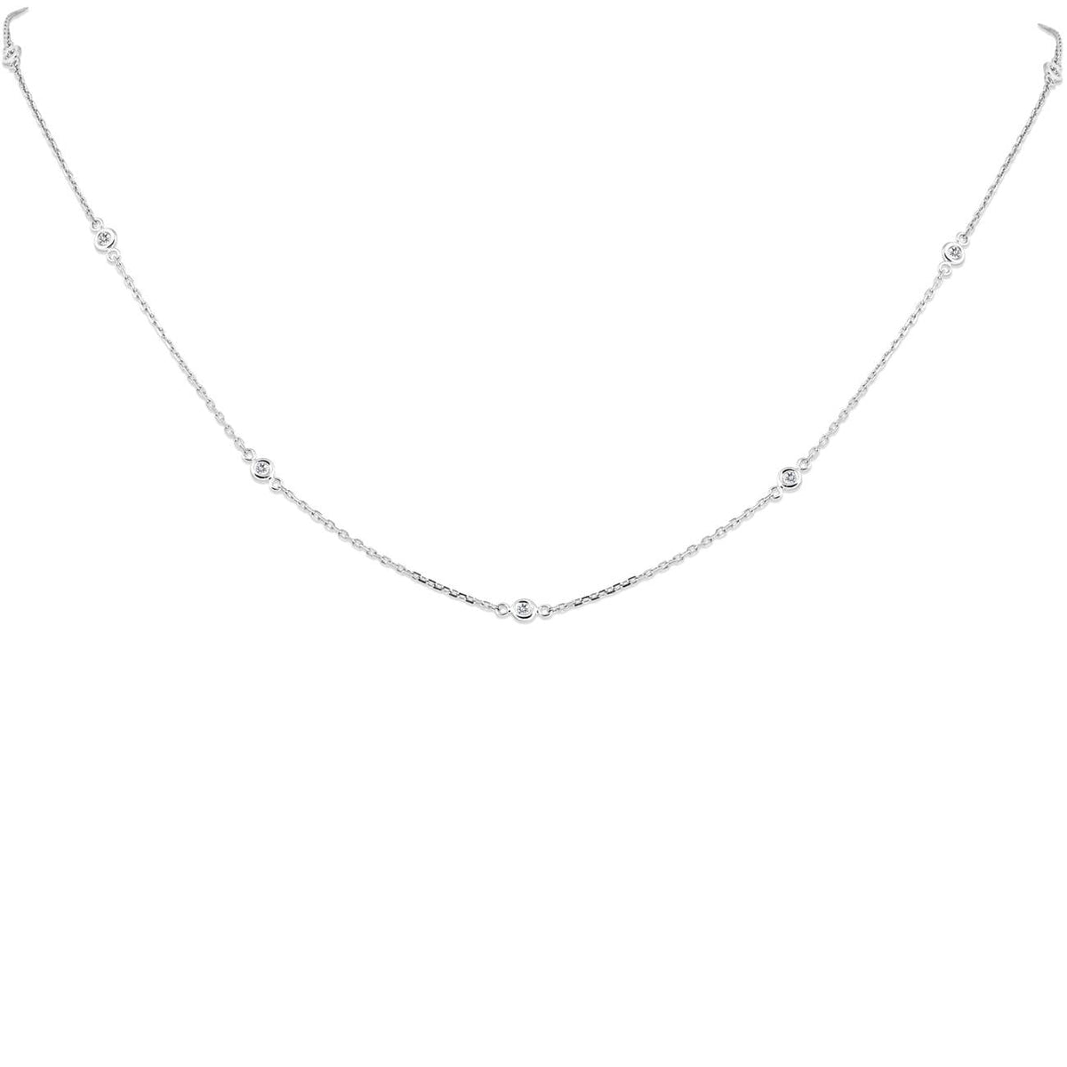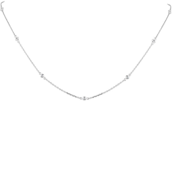 1/4ct Diamonds Bezel Station Necklace 18' 14K White Gold Women's