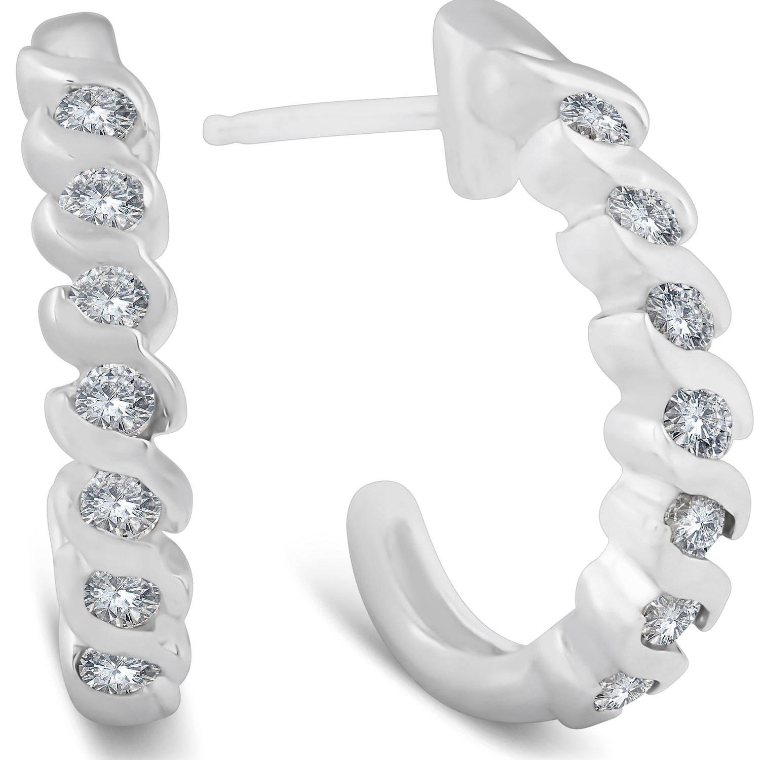 3/8 ct Diamond Hoop Earrings 14K White Gold