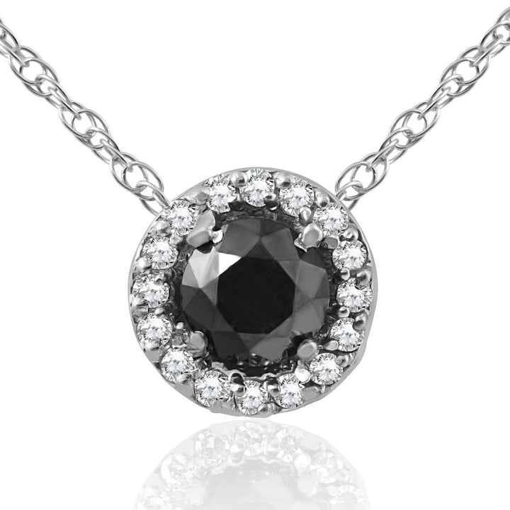 1/2 ct Black & White Diamond Pave Halo Solitaire Pendant Necklace 14K White Gold
