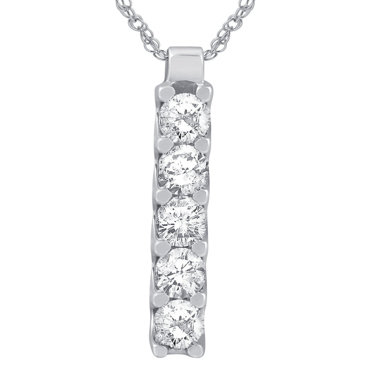 Handcrafted in 14k white gold with five round brilliant-cut natural diamonds (1 1/4ct total weight, I2-I3 clarity, H-I color). Includes an 18' clasp lock chain.