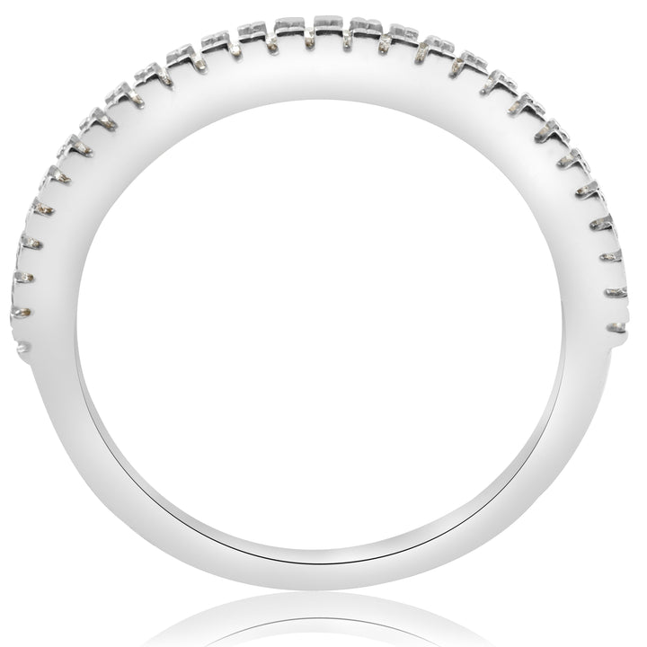 Handcrafted in 10k white gold with 27 round-cut natural diamonds (1/10ct total weight, I2-I3 clarity, H-I color). High-polished finish, perfect for stacking.