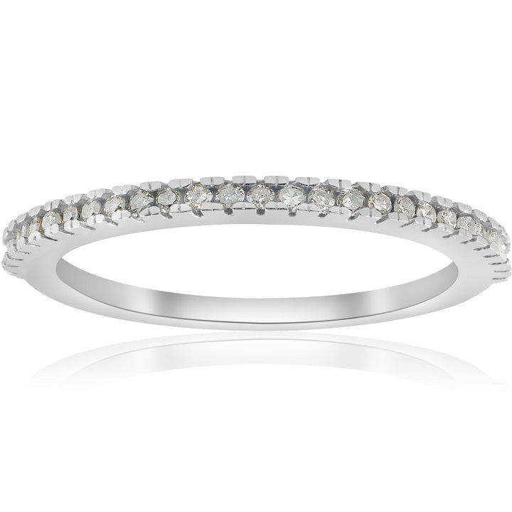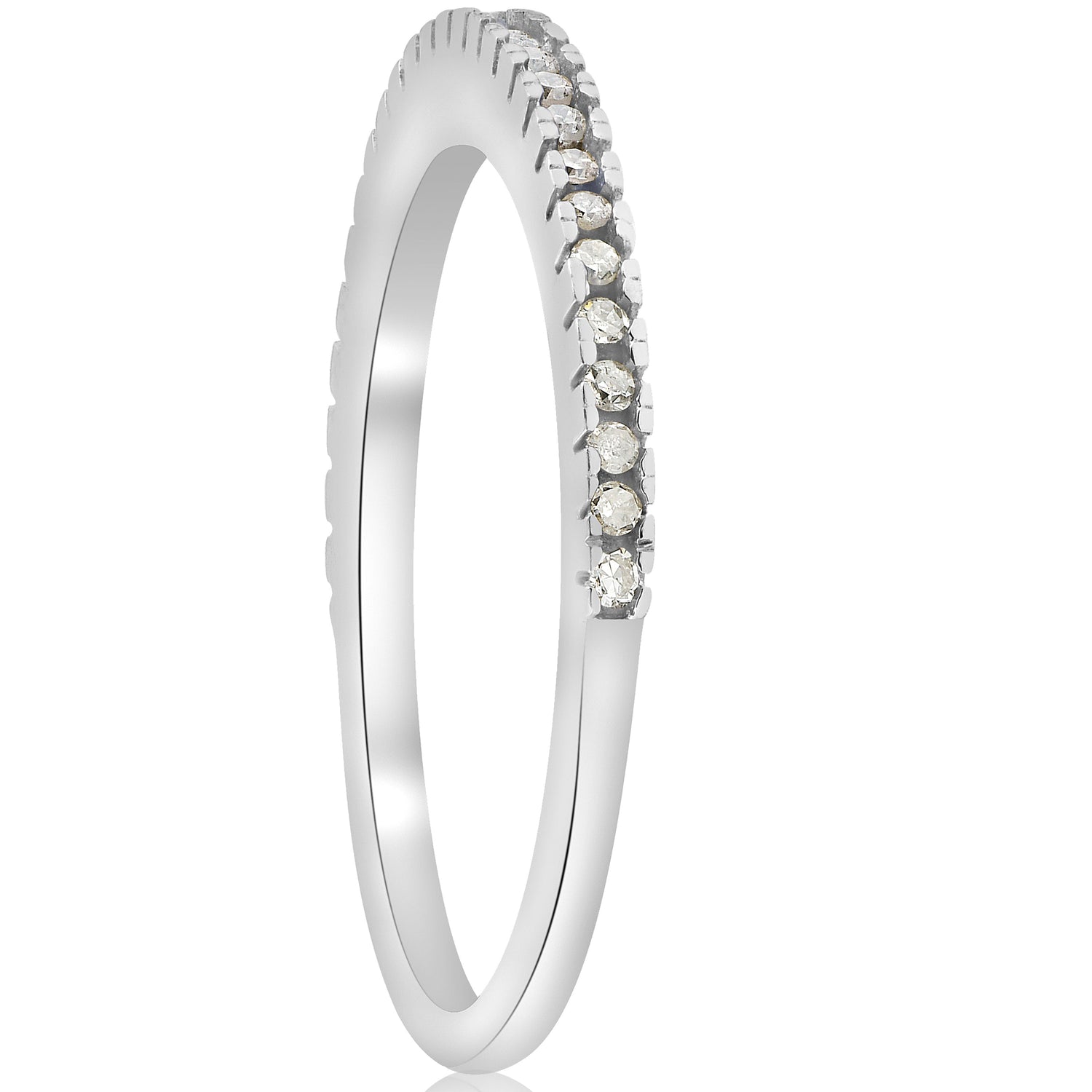 1/10ct Pave Diamond Wedding Ring 10k White Gold Stackable Women's Thin Band