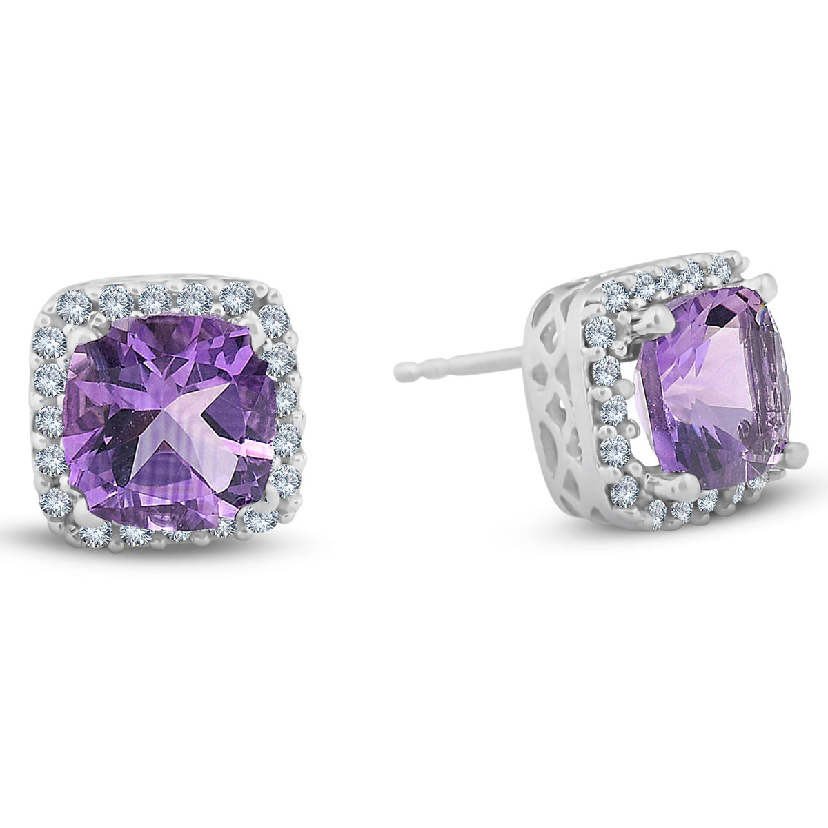 3ct Pave Halo Amethyst Studs 14K White Gold