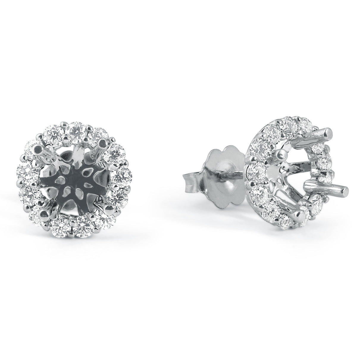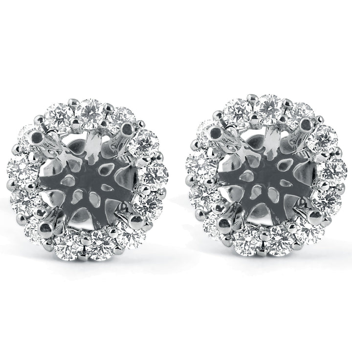5/8 ct Diamond Halo Studs Mounting Fits 5.5-6.5mm Round Stones 14k White Gold