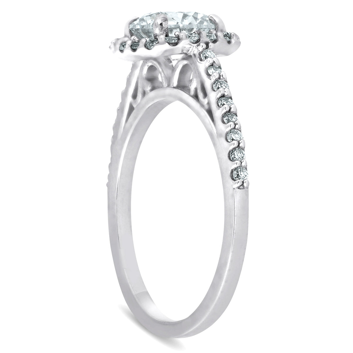 1Ct Cushion Halo Diamond Engagement Ring 14k White Gold SZ 7