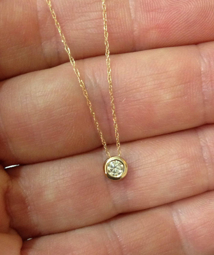 Handcrafted in 14k yellow gold with a 1/3 carat round brilliant cut natural diamond (I-J color, I2-I3 clarity). Includes an 18' solid 14k yellow gold chain.