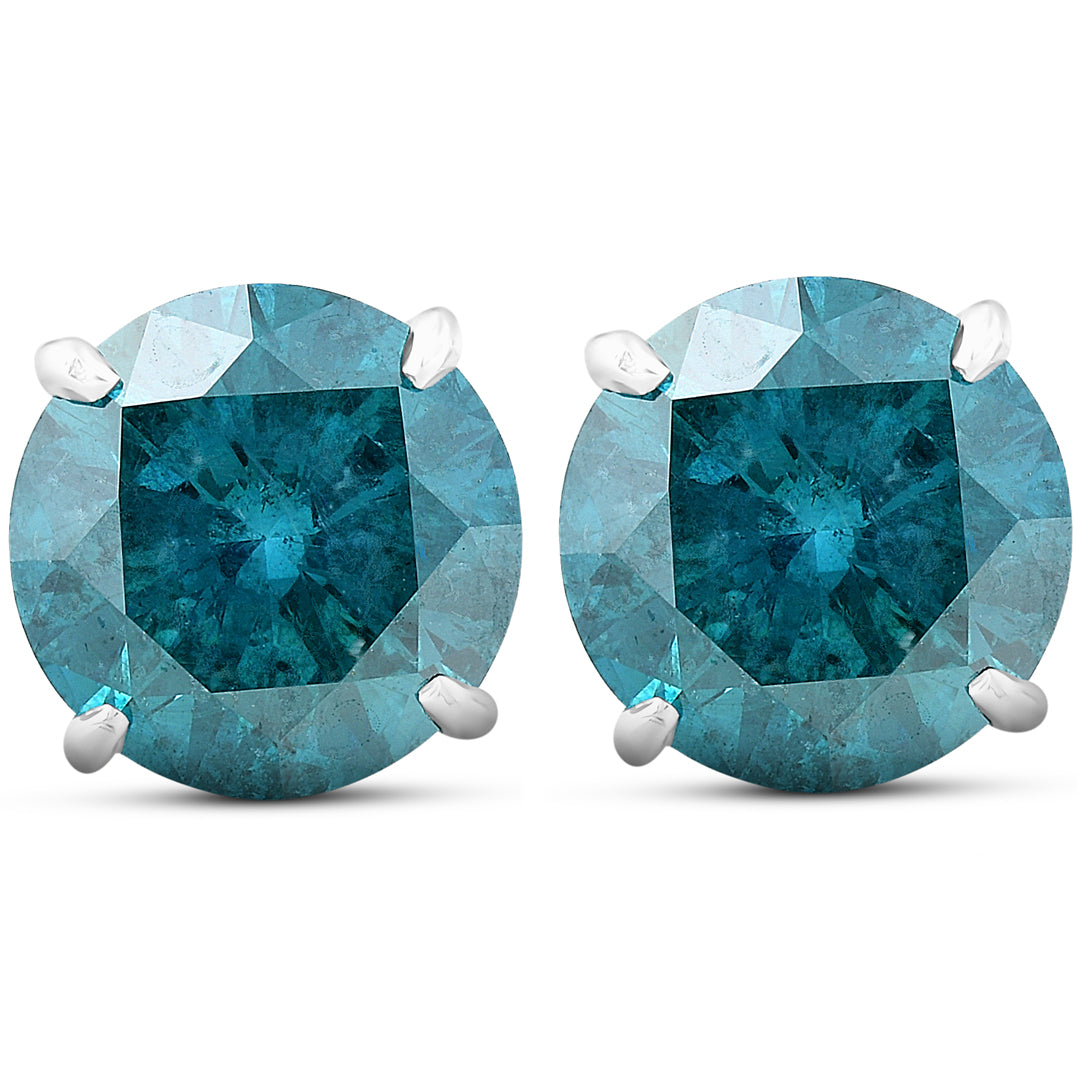 4.03 Ct Blue Diamond Studs 14k White Gold Lab Grown