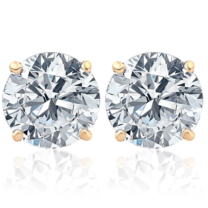 These 3 Ct Diamond Studs by Pompeii3 offer timeless glamour with two large round brilliant cut clarity-enhanced diamonds set in classic prong mountings, perfect for celebrating life’s most cherished moments.