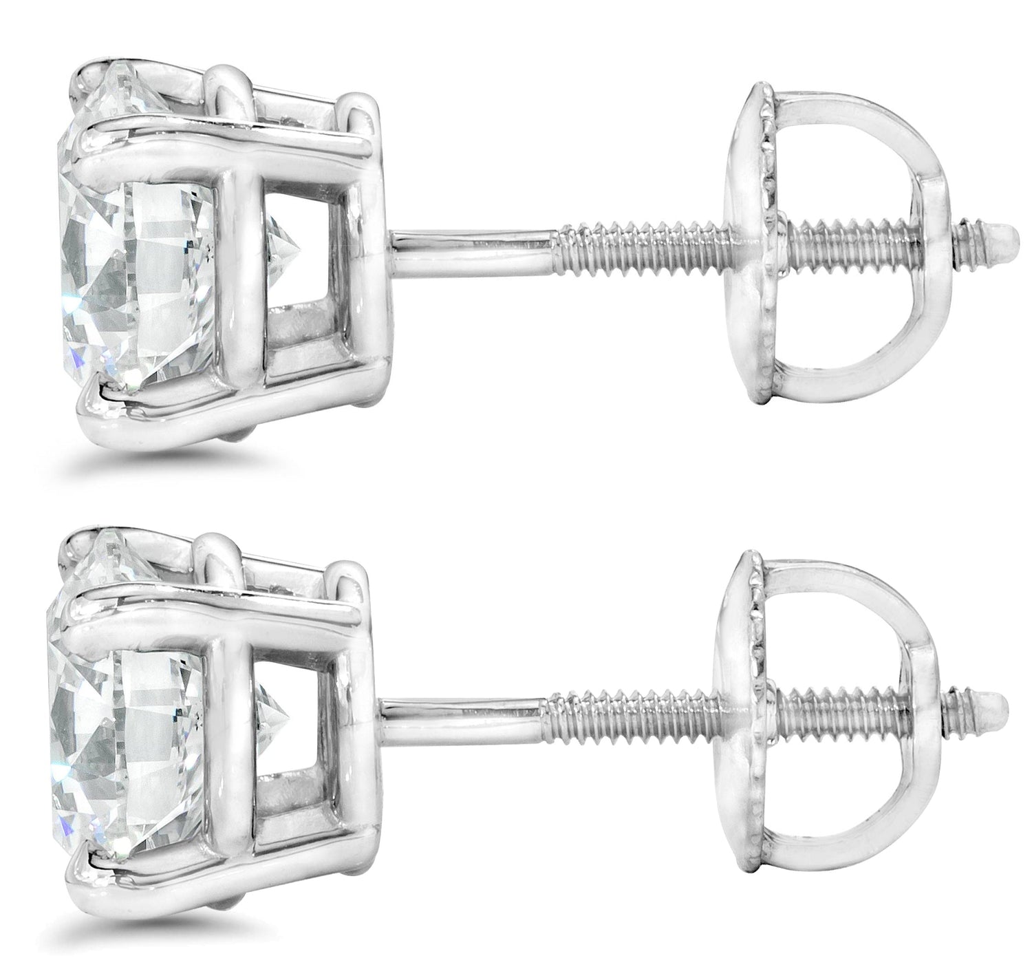 4 Ct TW Round Moissanite Screw Back Studs 14k White Gold