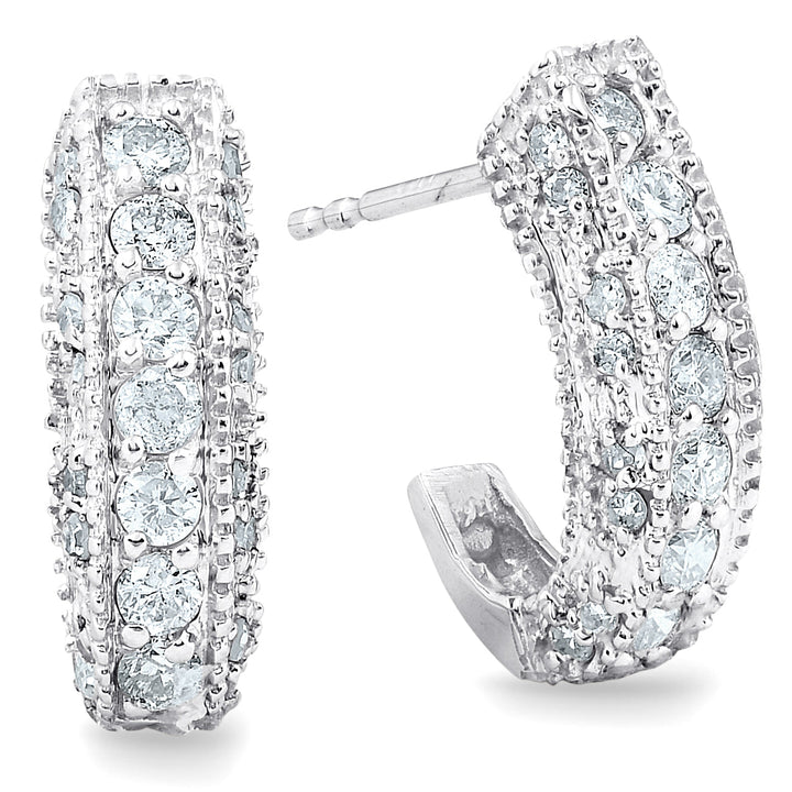 Crafted in solid 14k white gold with 23 round brilliant cut natural diamonds, totaling 1/2ct. Secured with 14k white gold push snap backs.