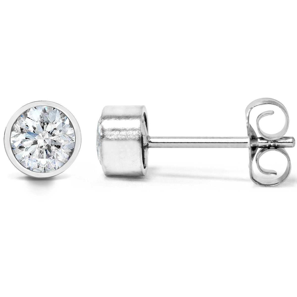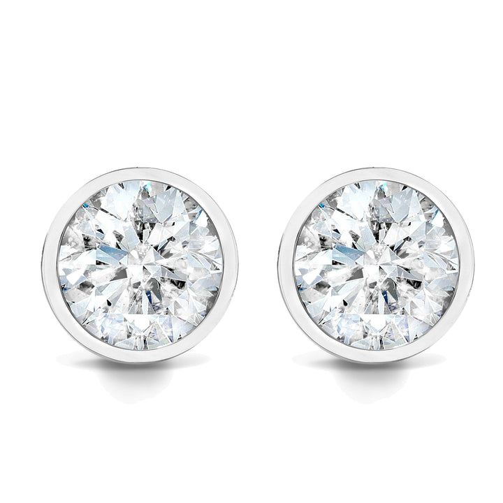 These 3/4ct Bezel Diamond Studs by Pompeii3 are a timeless piece of luxury. Featuring round brilliant cut diamonds bezel set in solid 14k white gold, these studs have a sleek, modern look that is both refined and understated. The push-back earring backings ensure security and comfort for all-day wear.