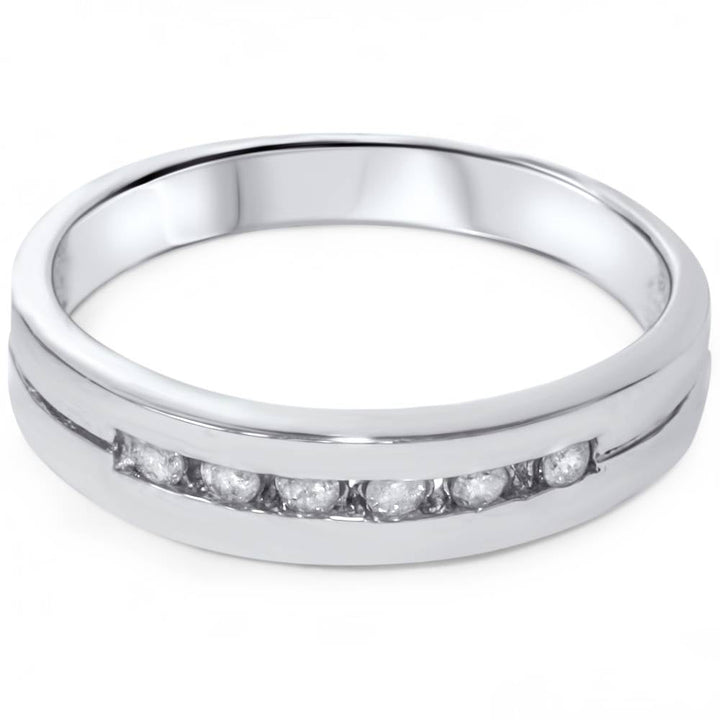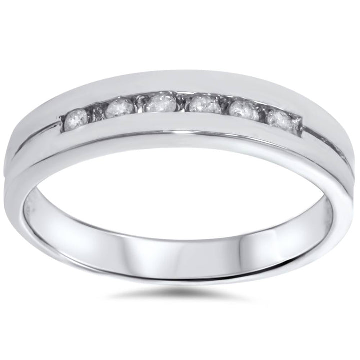 The 1/4ct Diamond Wedding White Gold Stackable Guard Ring by Pompeii3 features round brilliant cut natural diamonds in a channel setting. This classic band is designed to complement engagement rings, perfect for stacking. The channel setting securely holds the diamonds, allowing the ring to shine with maximum brilliance.