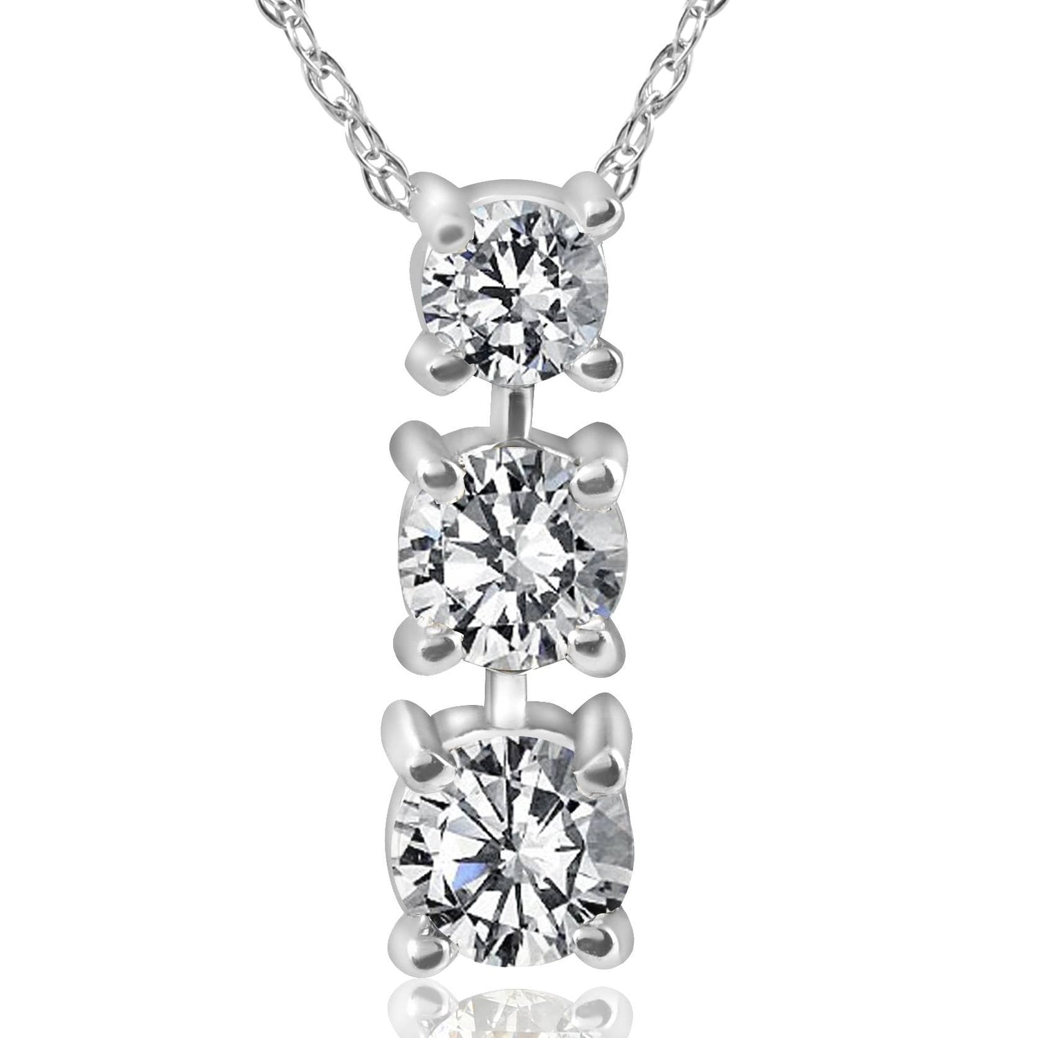 1/2 CT 3-Stone Diamond Pendant 14k White Gold
