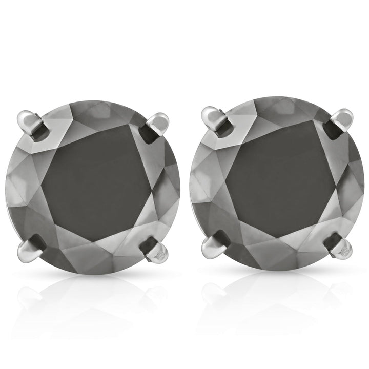 Handcrafted in 14k white gold with two round brilliant cut genuine color-enhanced black diamonds totaling 3ct. Secured with 14k white gold push backs.
