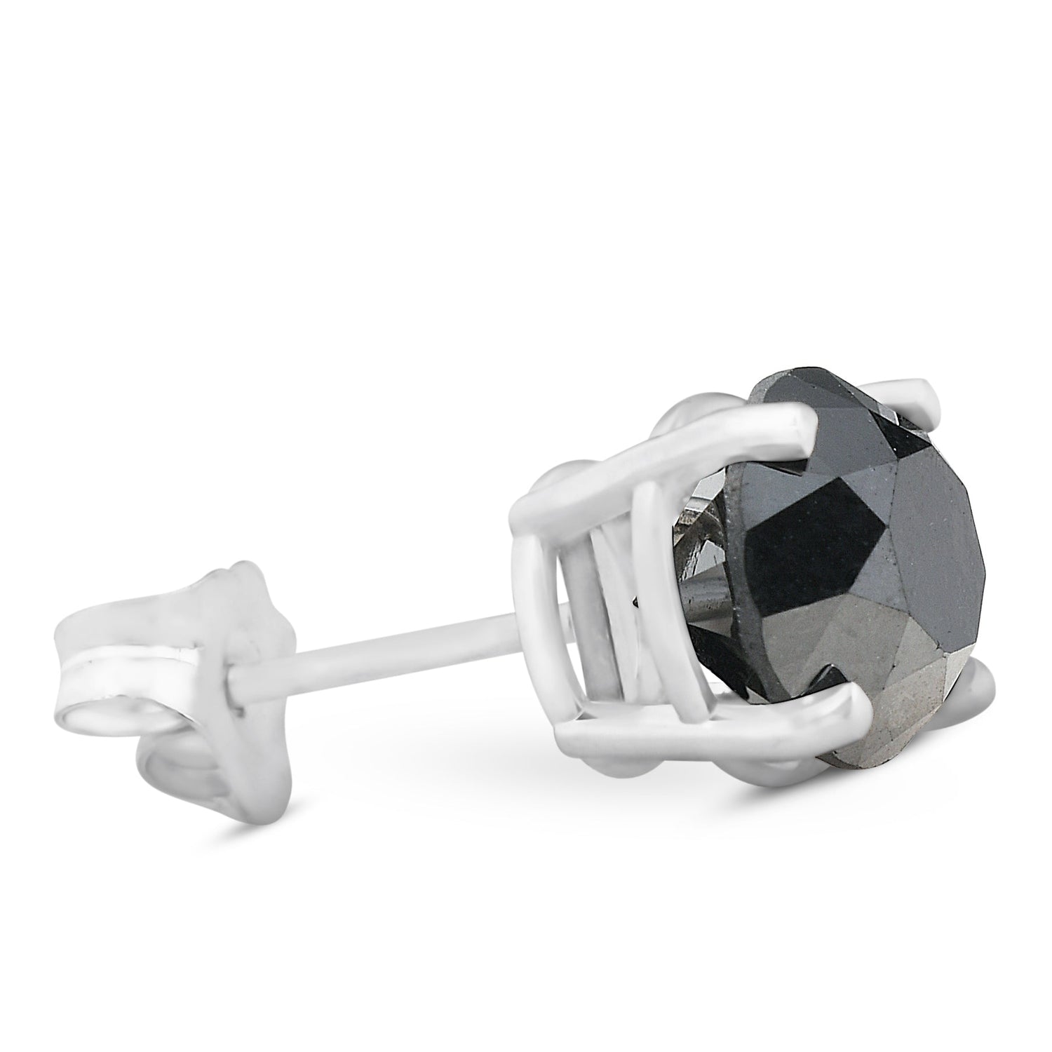 2 CT Black Diamond Single Stud 14K White Gold (This is one earring not a pair)