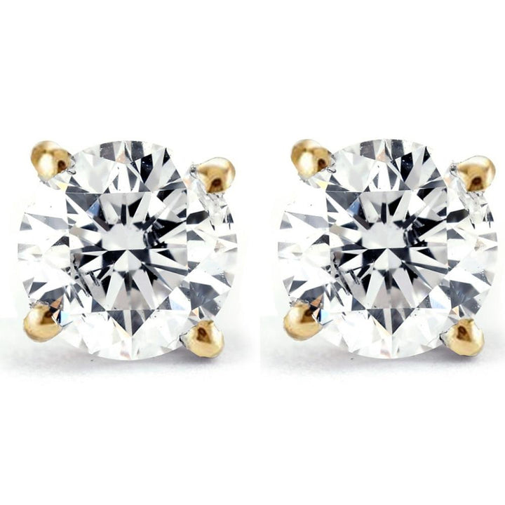 These 3/4ct Diamond Studs by Pompeii3 offer elegant brilliance. Large round diamonds are prong-set in rich yellow gold settings, providing timeless sparkle perfect for both day-to-night styling.