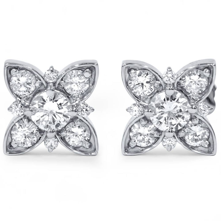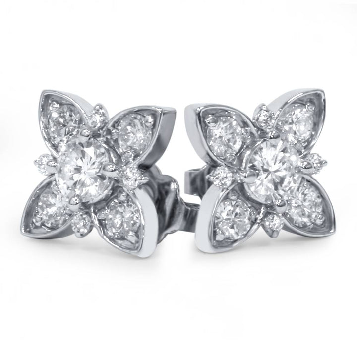 1 ct Floral Starburst Diamond Studs 14K White Gold