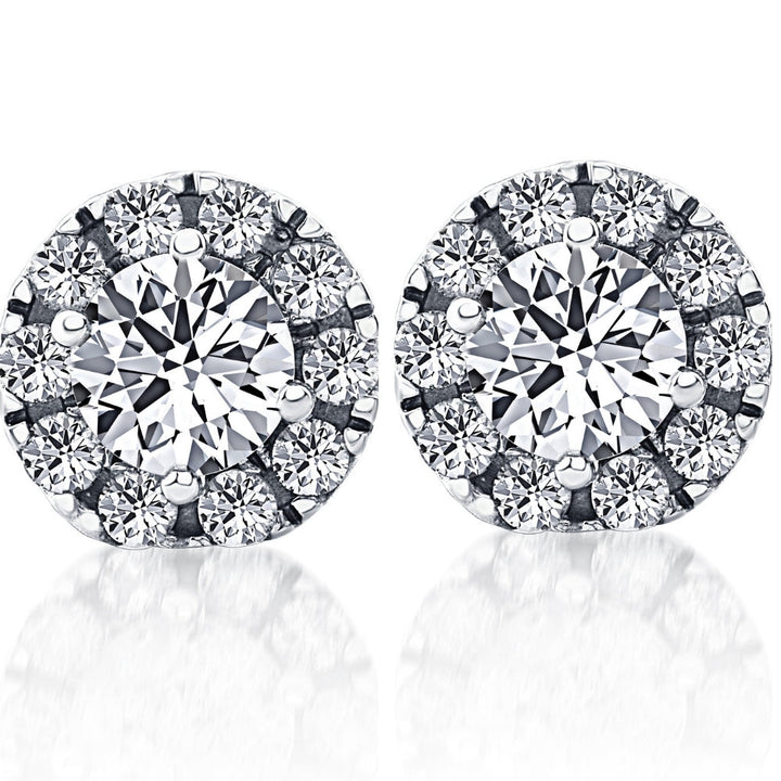 1 1/2 CT Pave Halo Diamond Studs 14K White Gold