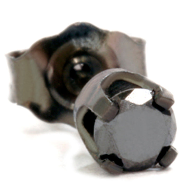 Crafted in solid 10k black gold with one 1/6ct round brilliant cut black color-enhanced natural diamond. Secured with black gold push back.