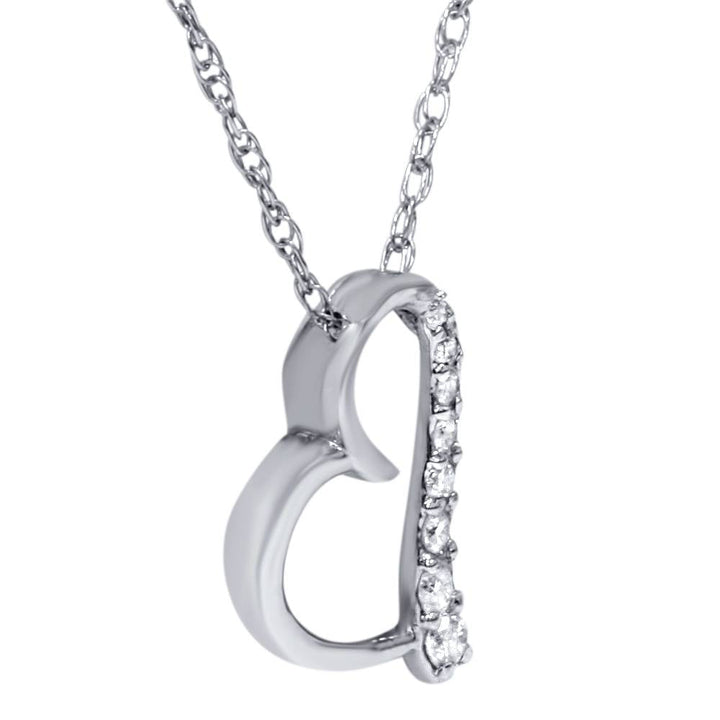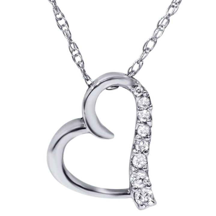 This Diamond Heart Shape Pendant by Pompeii3 is a classic yet petite piece, perfect for any occasion. Featuring 8 round-cut diamonds set in solid 10K white gold, this pendant is designed in the shape of a heart, symbolizing love and warmth. The included 10K white gold clasp lock chain ensures secure and comfortable wear.