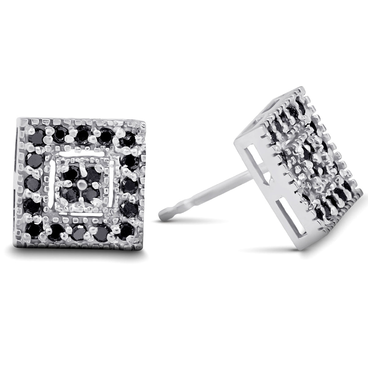 1/3ct Pave Black Diamond Studs 10K White Gold