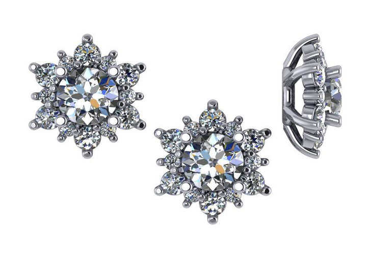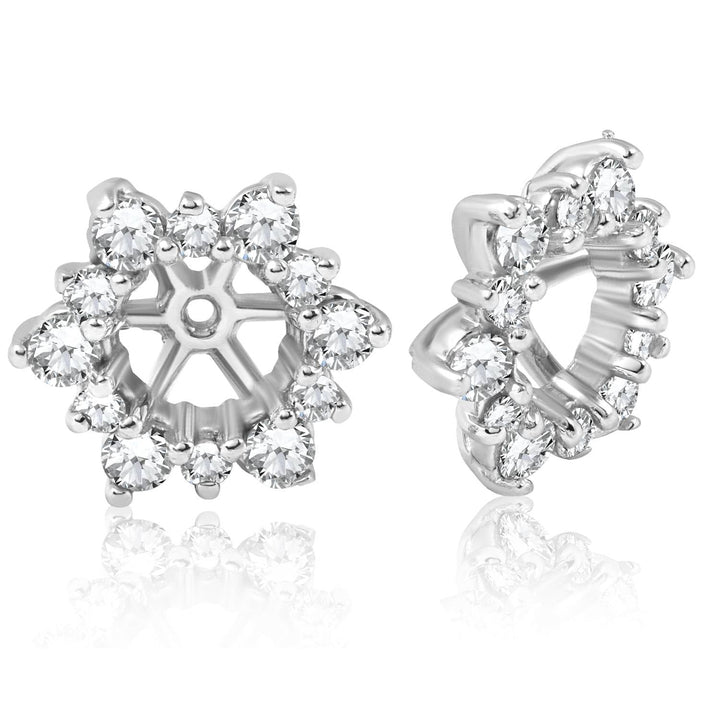 These 7/8ct Diamond Earring Stud Jackets by Pompeii3 are designed to enhance and elevate existing diamond or gemstone studs. Set with round brilliant-cut diamonds in 14k white gold, these jackets fit around 3/4ct diamonds (5.5-6mm), adding extra sparkle and elegance. Perfect for special occasions or everyday luxury.