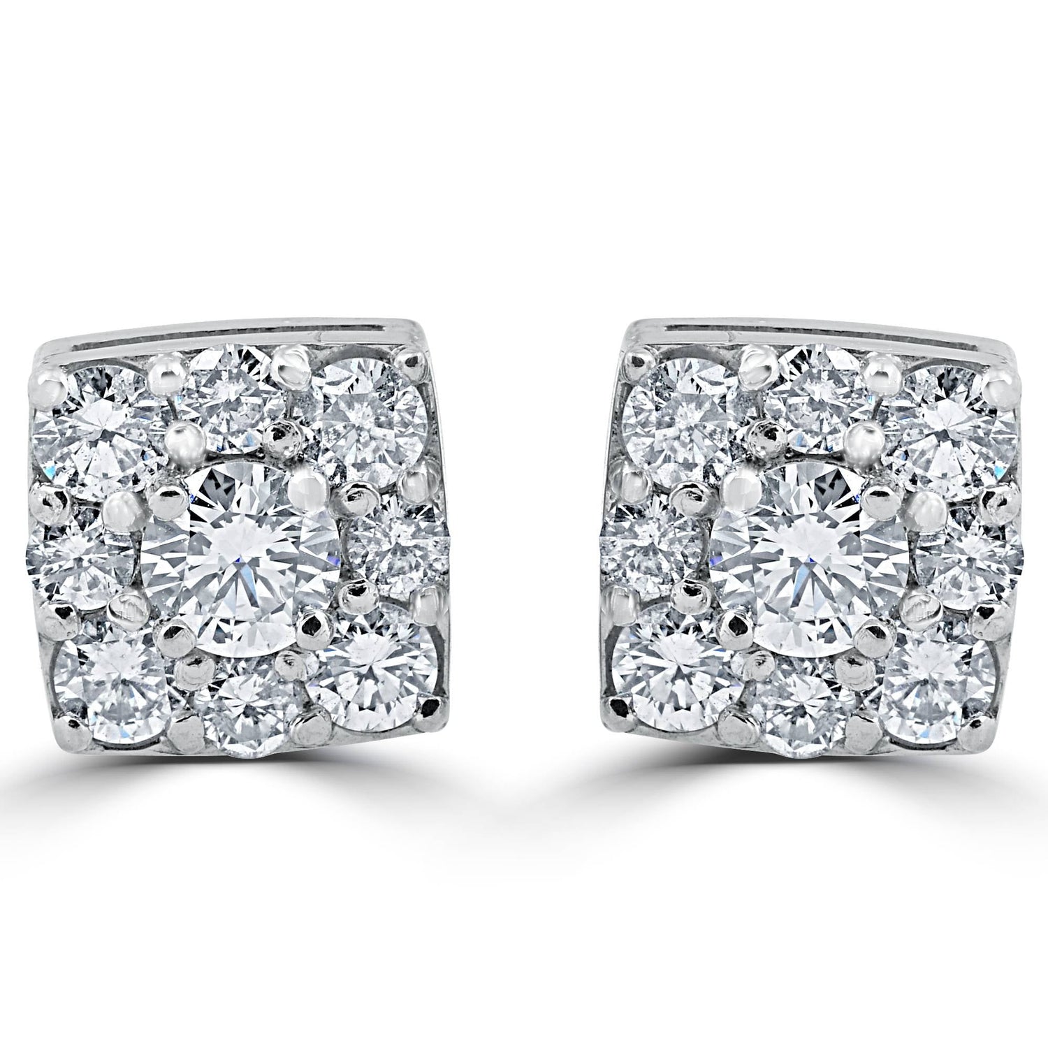 1 1/5ct Cushion Halo Round Diamond Studs 14K White Gold 8mm