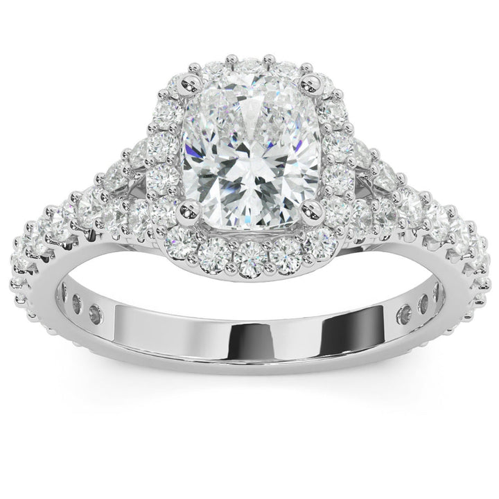 1 3/4ct Cushion Cut Diamond Halo Split Shank Engagement Ring 14K White Gold