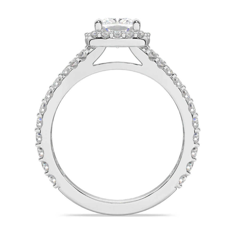 This 1 3/4ct Cushion Cut Diamond Halo Split Shank Engagement Ring by Pompeii3 is grand and elegant. A 1ct genuine cushion-cut center diamond is accentuated by round diamonds along a split shank design, creating a luxurious and ornate finish.