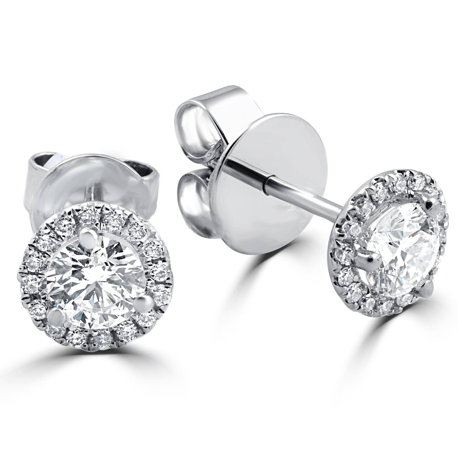 1/2 CT Round Diamond Halo Studs 10K White Gold