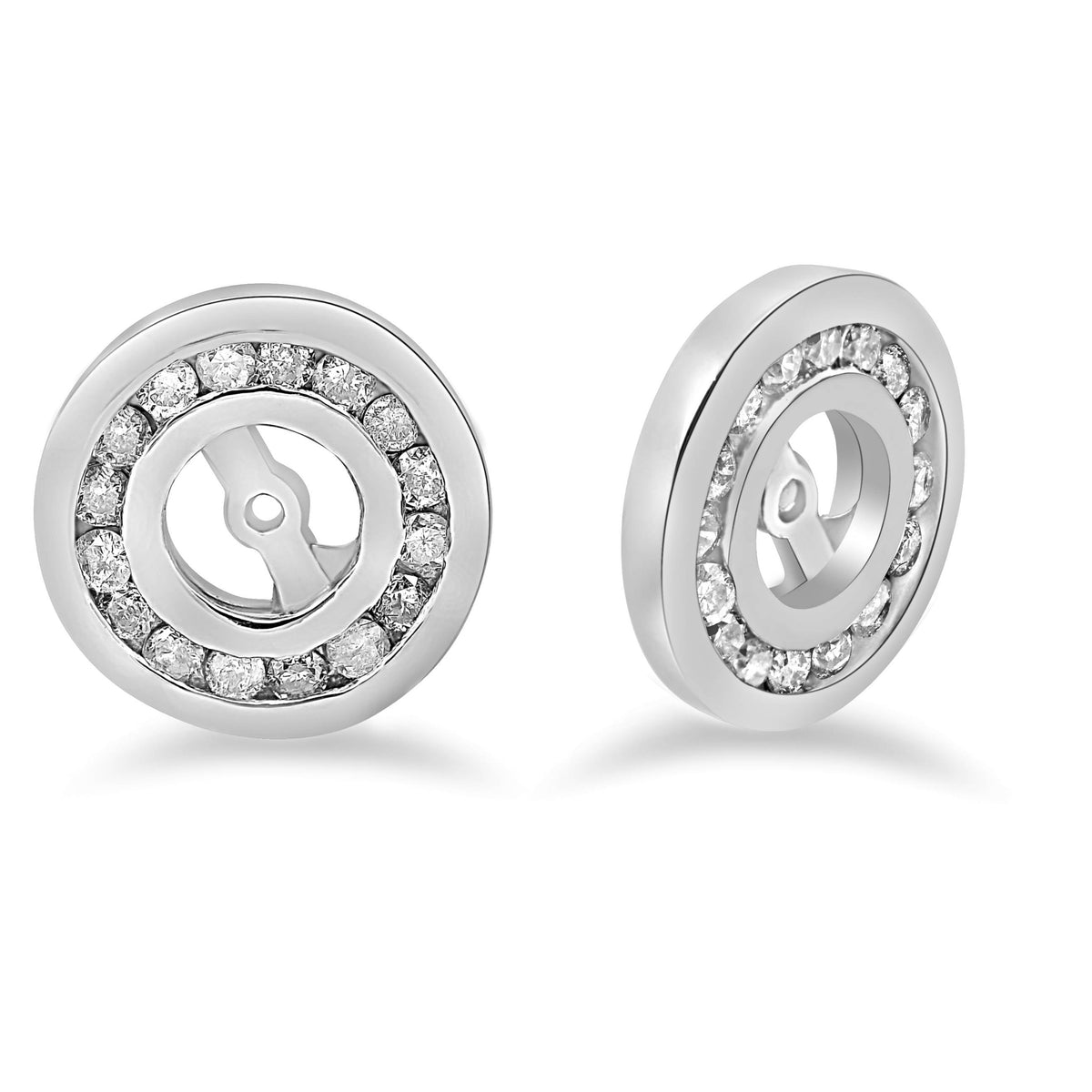 Crafted in solid 14k white gold with 1/2 carat total weight of diamonds. Designed to fit earrings up to 4mm. Diamond clarity I2-I3, color G-H.