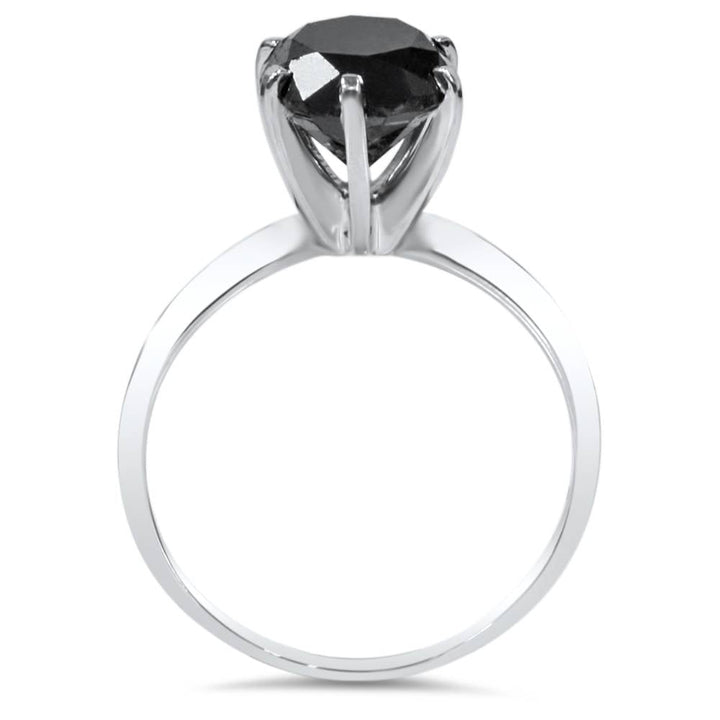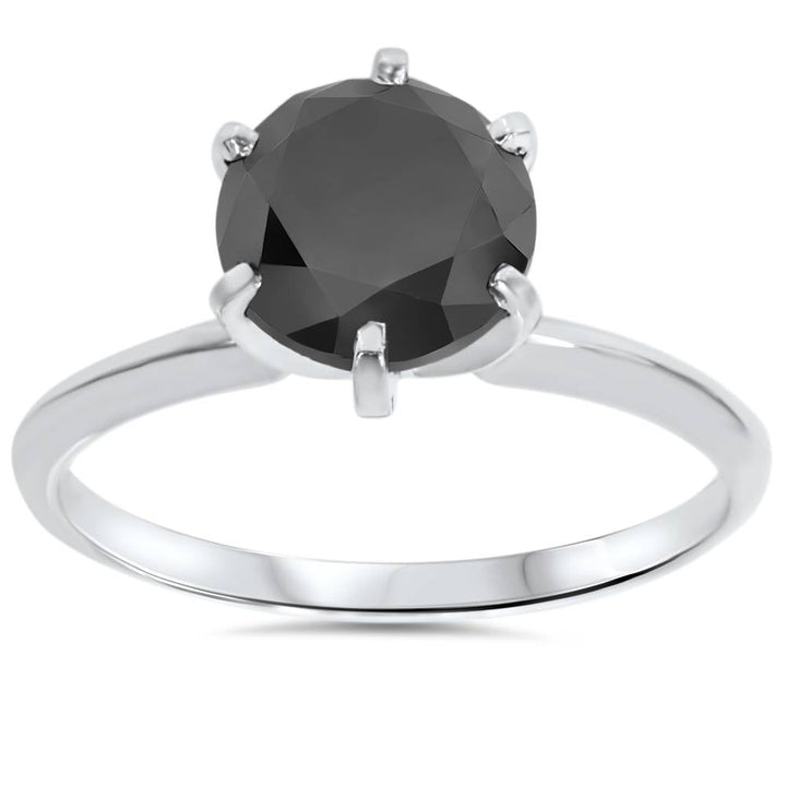 2 1/2 CT Black Diamond Solitaire Ring 14K White Gold