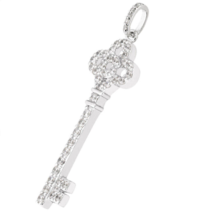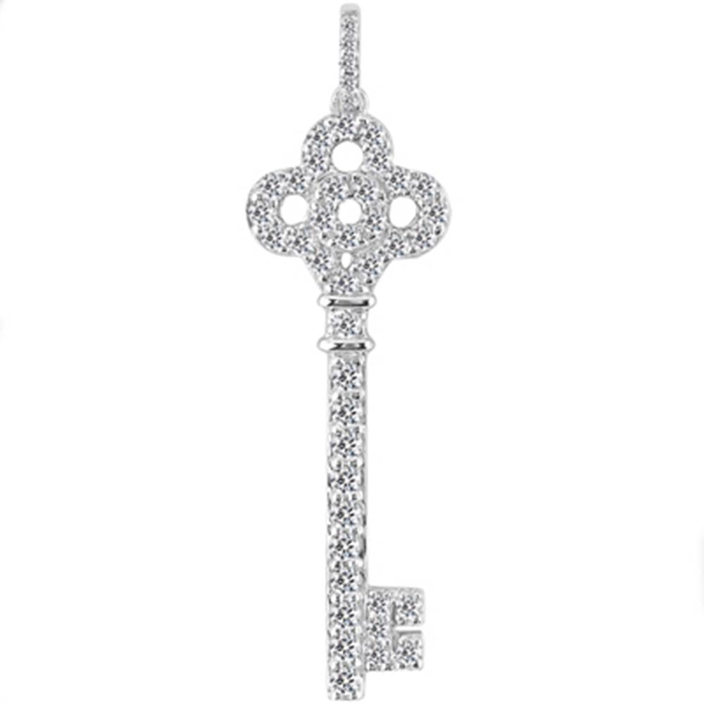 3/4ct Diamond Key Pendant Necklace 14K White Gold New