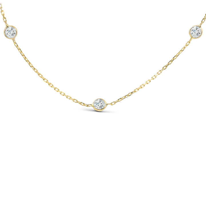 2 CTW Diamond Bezel Station Necklace 14k Yellow Gold