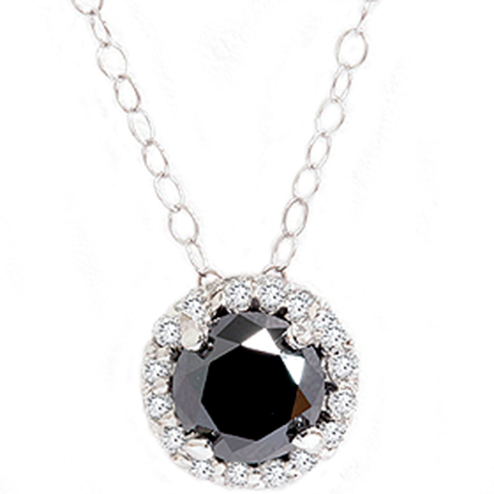 1 1/8 ct Black White Diamond Solitaire Pave Halo Pendant