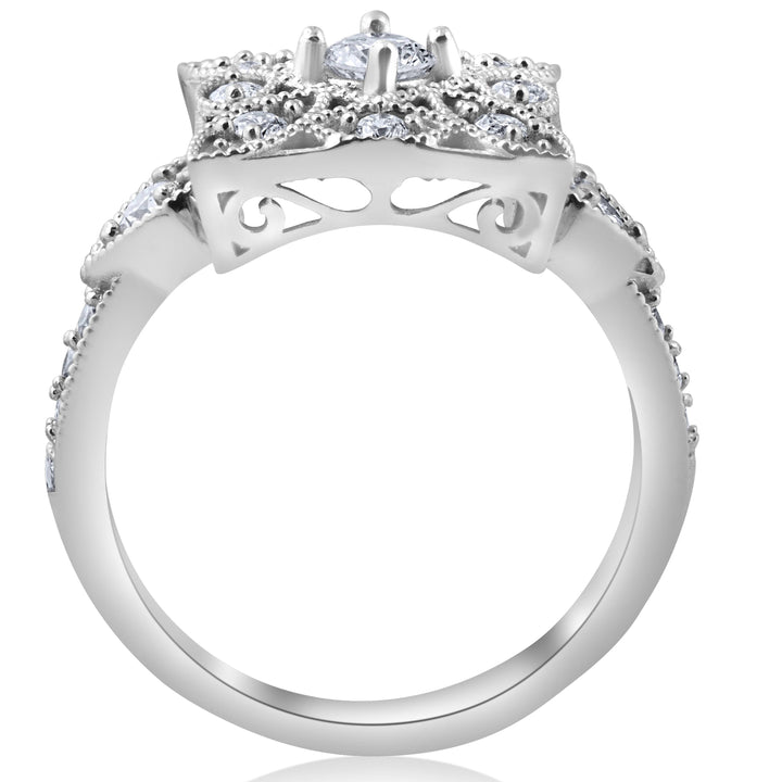 1/2 CT Vintage Diamond Ring Square Framed Filigree Band 10K White Gold