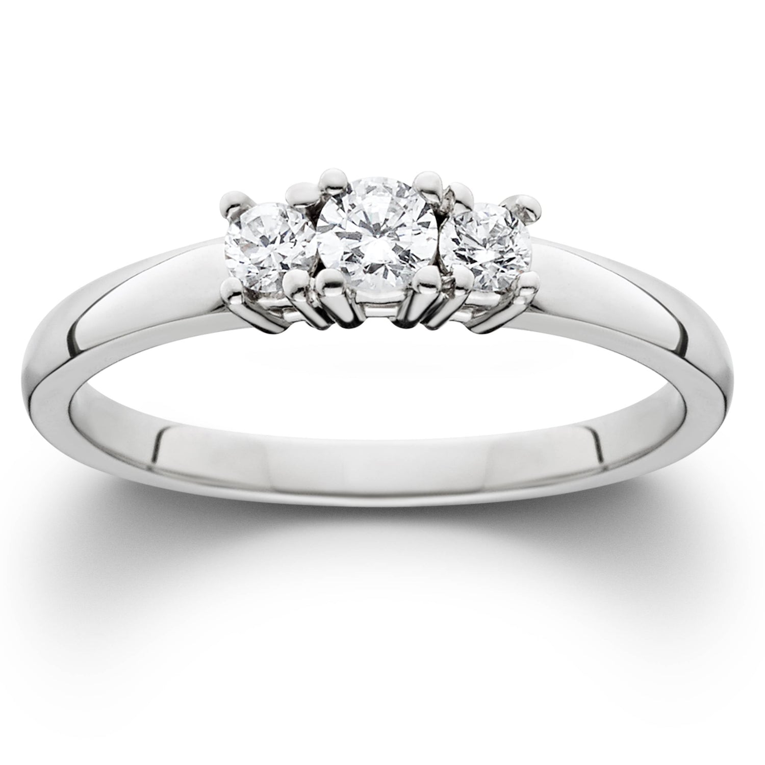 1/2 CT Three Stone Diamond Ring 14K White Gold