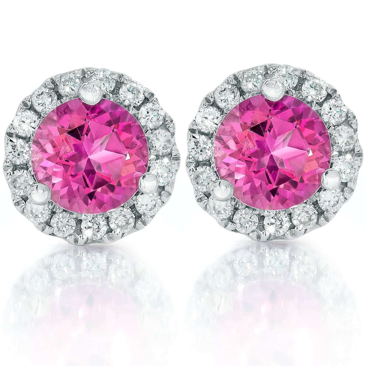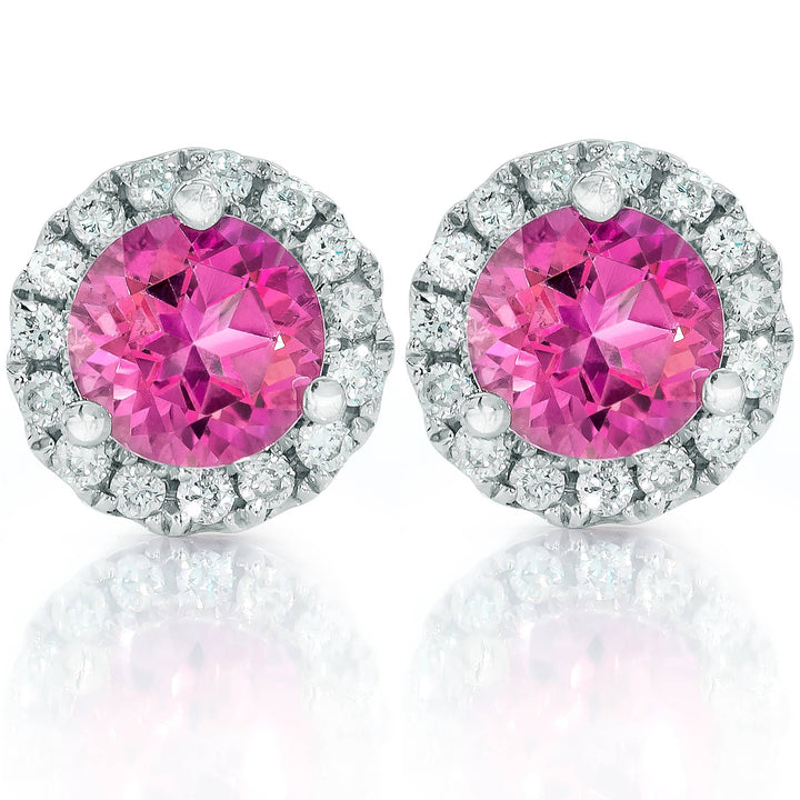 1ct Pink Topaz & Diamond Halo Studs 10K White Gold