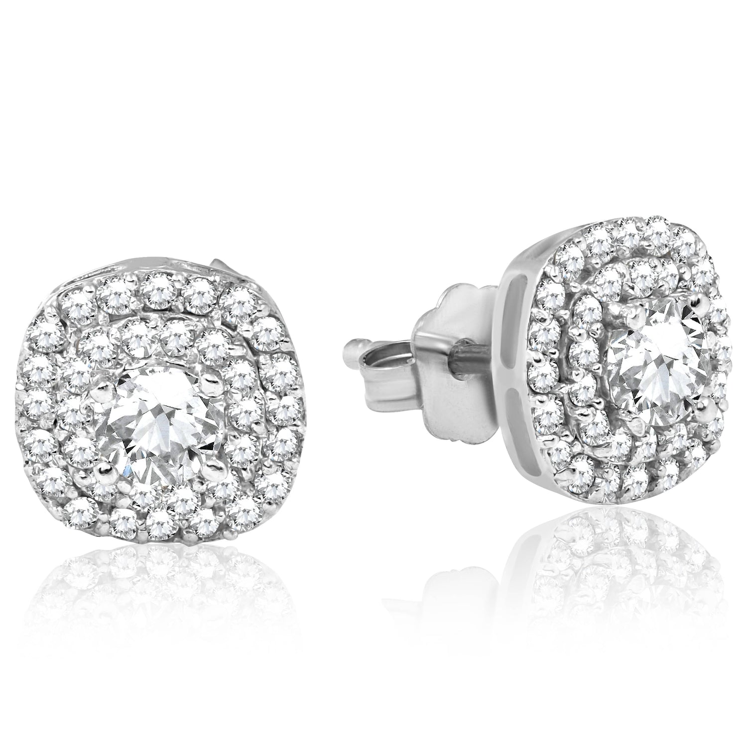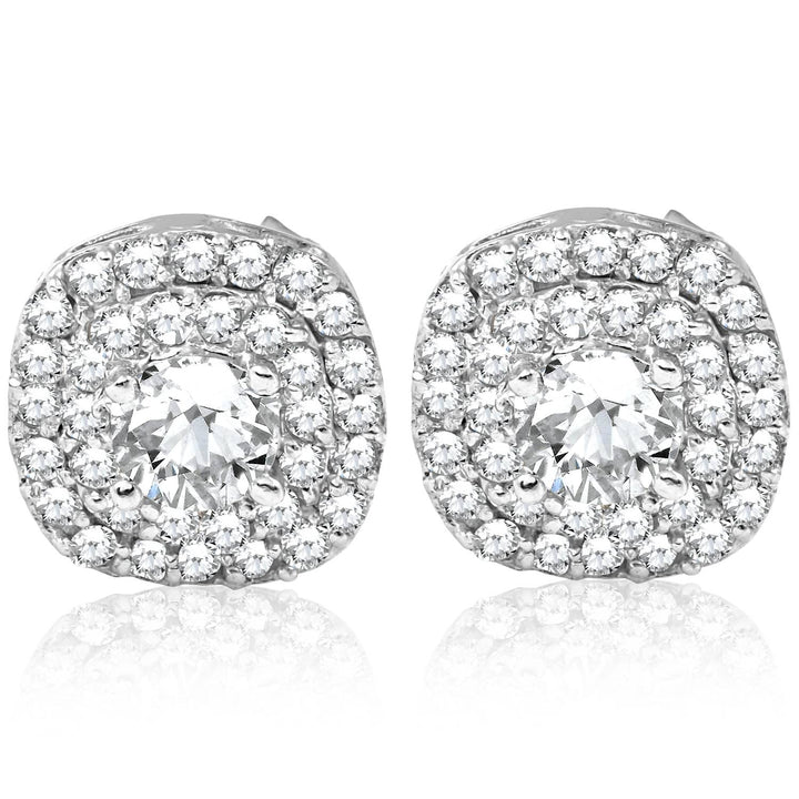 3/4ct Pave Double Halo Diamond Studs 10K White Gold