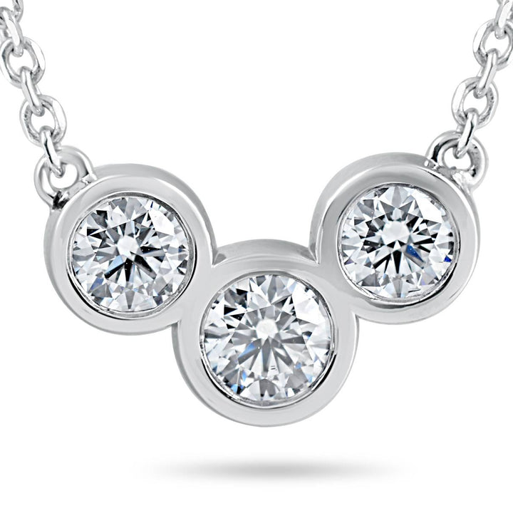 1 3/4ct Diamond 3 Stone Bezel Pendant 14k White Gold 18' Lobster Clasp Lab Grown