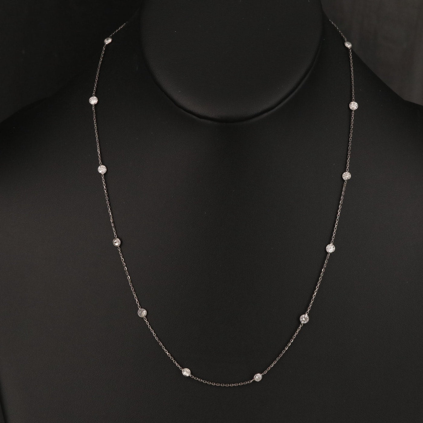 1 3/4 Ctw Diamond Bezel Station Necklace 14K White Gold 18'