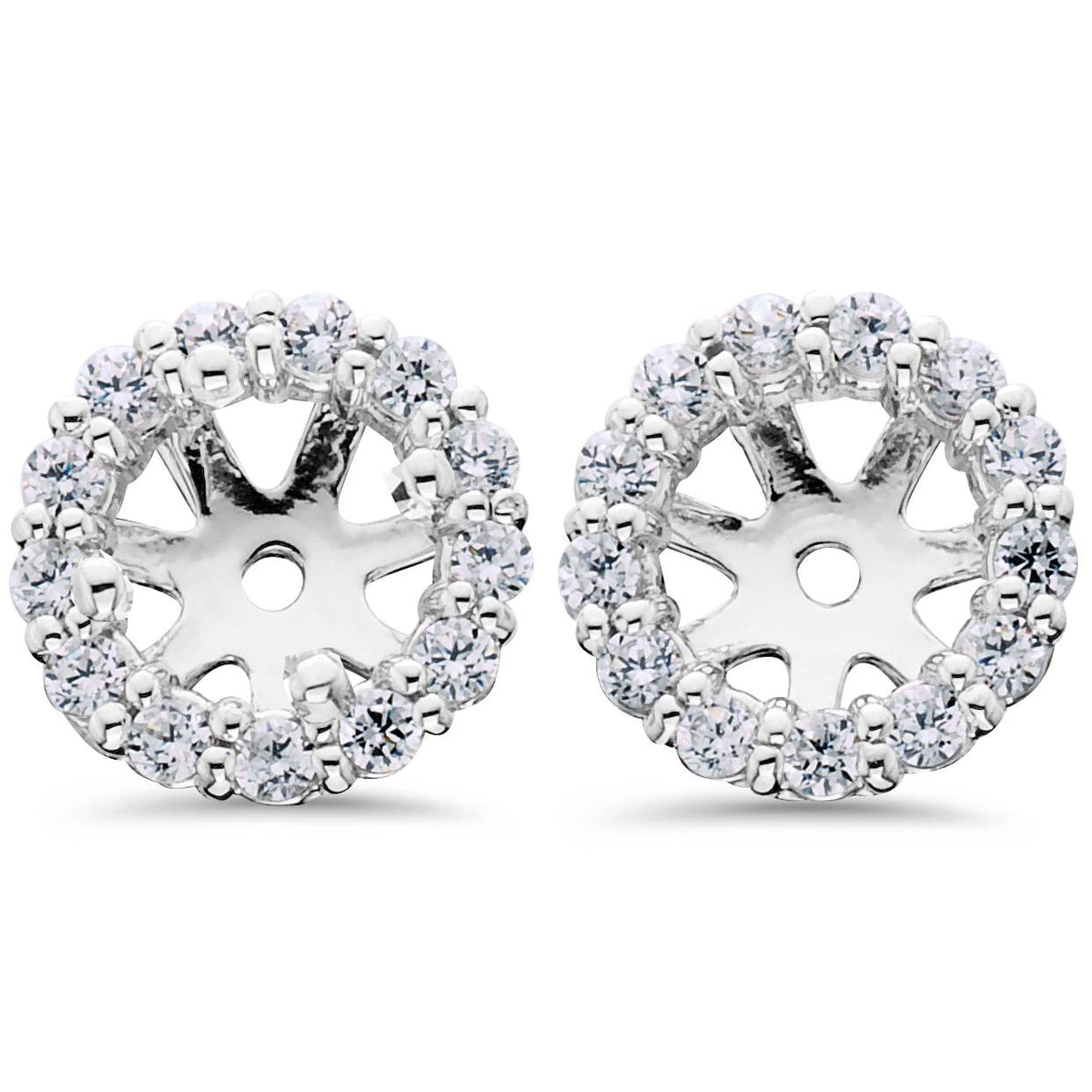 Women's 5/8 ct Diamond Studs & Halo Earring Jackets Solid 14k White Gold