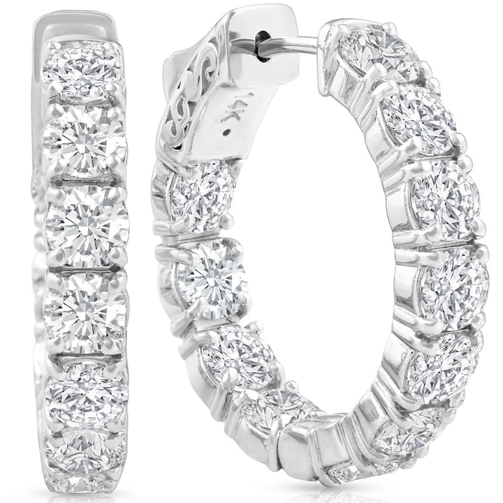 4 1/2 Ct Diamond Inside Outside Hoops W/ Vault Lock 14k White Gold Lab Grown