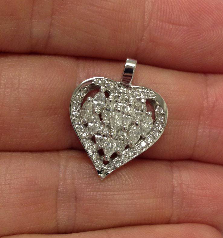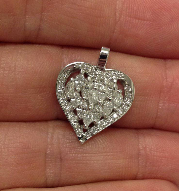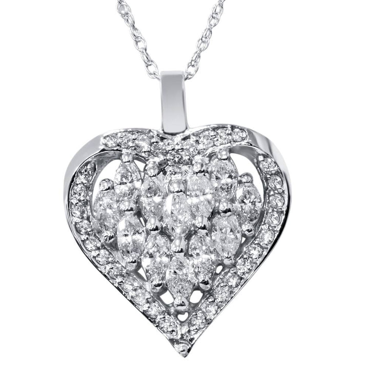 1 1/4ct Heart Shaped Marquise Diamond Pendant 14K White Gold