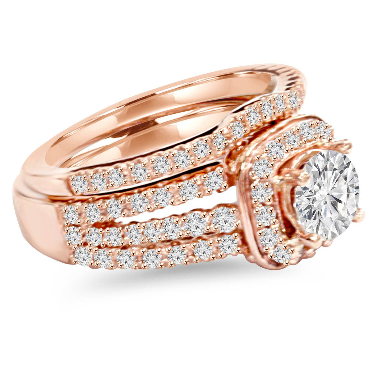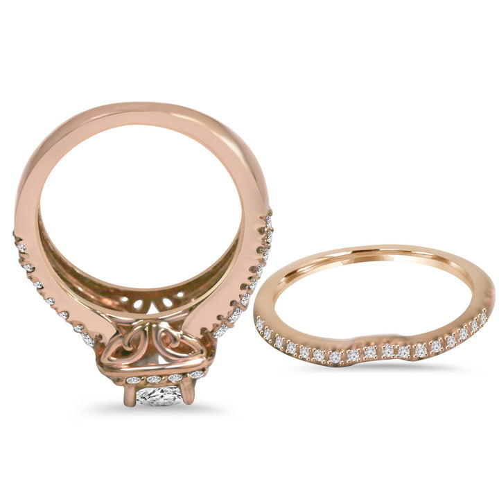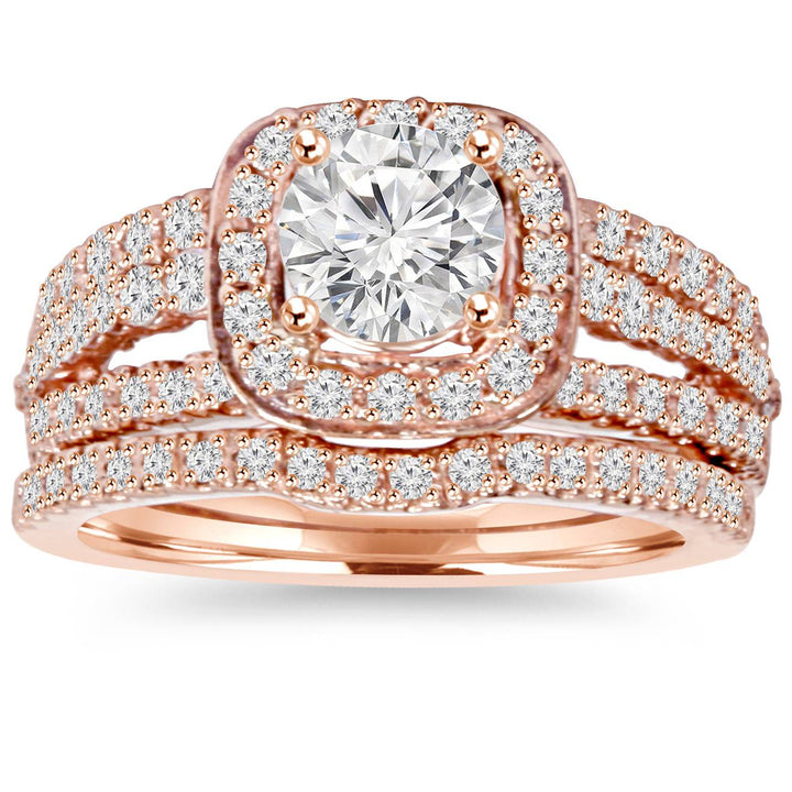 1.50CT Cushion Halo Diamond Engagement Ring Set 14K Rose Gold