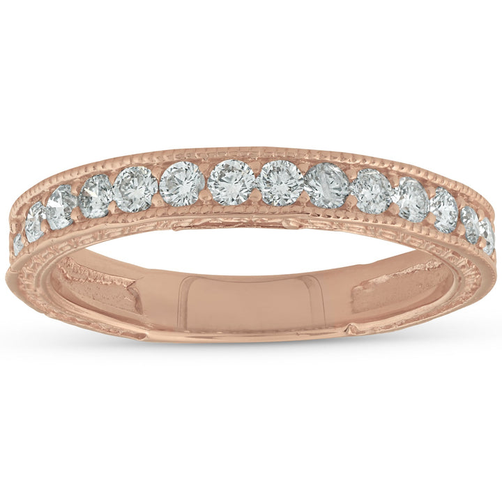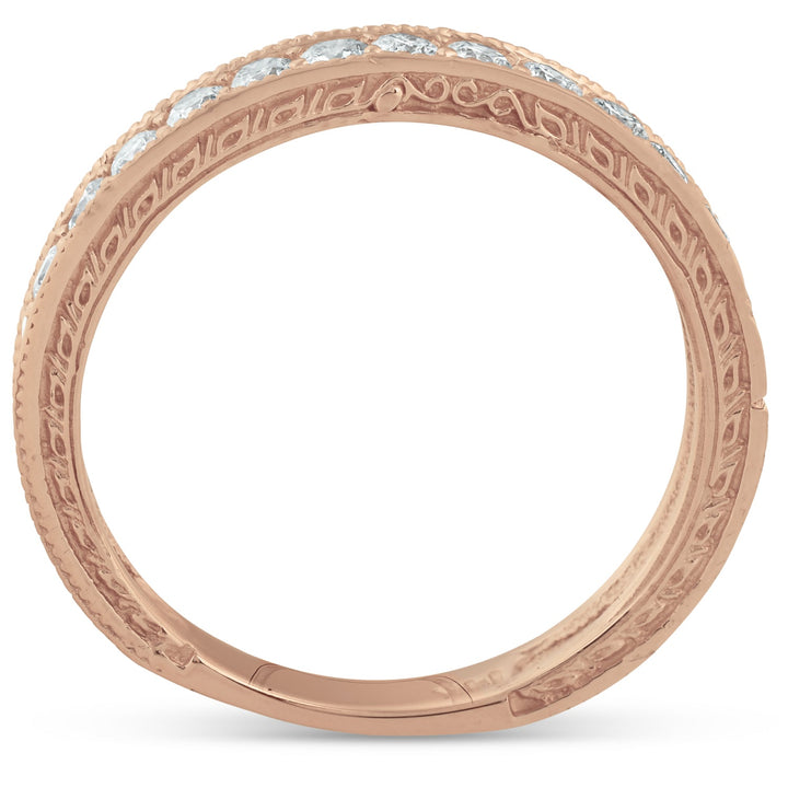 14k Rose Gold 1/3ct Diamond Vintage Wedding Ring Scroll Pattern Stackable Band