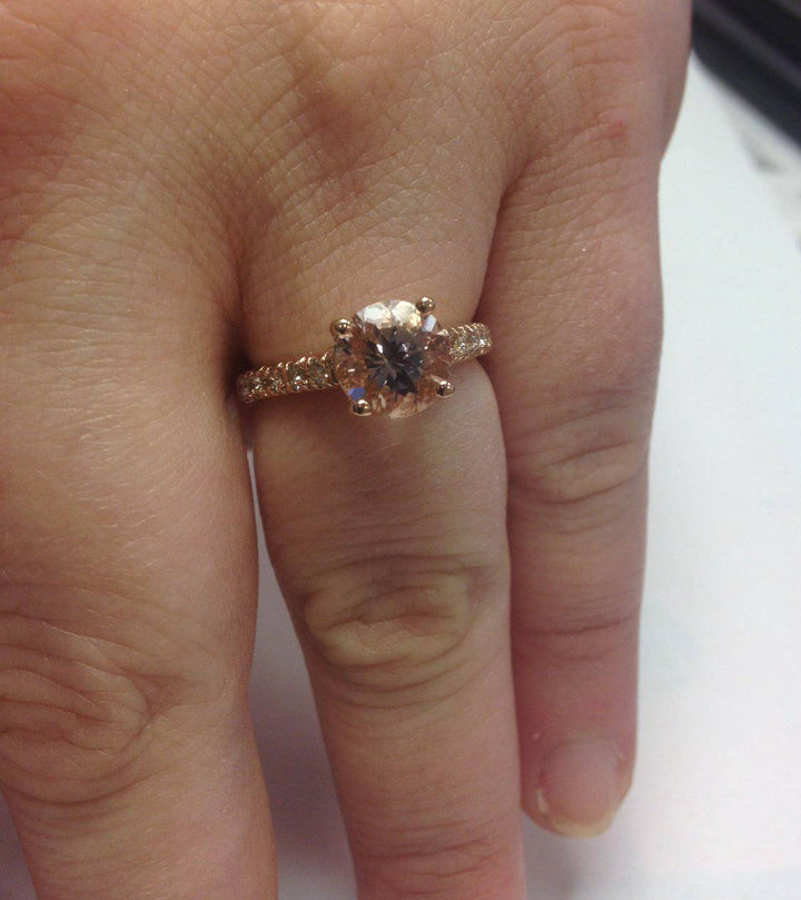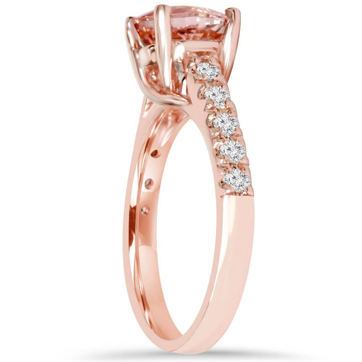 8MM Morganite & 1/4 Carat Diamond 14K Rose Gold Engagement Ring (1 3/4TW) Women