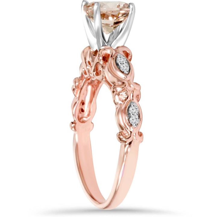 1 Carat Morganite & Diamond Vintage Ring 14K Rose Gold